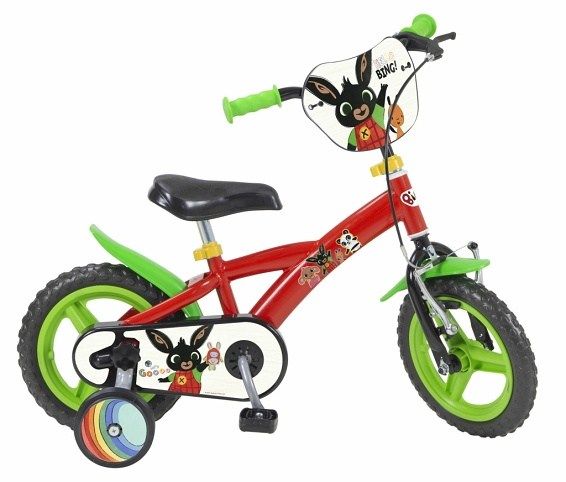 Dětské šlapací kolo Toimsa Bing červeno/zelené 12". Vybavení kola – lakovaný rám, přední brzda, odrazka, nastavitelná řídítka a sedlo, přední a zadní blatník, odrazky, odnímatelná stabilizační kolečka, nafukovací kola a kryt řetězu. Vhodné pro děti od tří do pěti let.