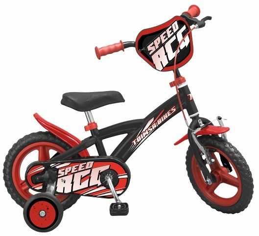 Dětské šlapací kolo Toimsa Speed černo/červené 12". Vybavení kola – lakovaný rám, přední brzda, odrazka, nastavitelná řídítka a sedlo, přední a zadní blatník, odrazky, odnímatelná stabilizační kolečka, nafukovací kola a kryt řetězu. Vhodné pro děti od tří do pěti let.