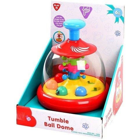 Kupole s lopatičkami od Play Go je kolotoč s míčky. Tento mechanický kolotoč okouzlí děti na první pohled. Stačí stisknout modré tlačítko na kolotoči a pozorovat, jak se celý vnitřek roztočí a zábavné kuličky s vtipnými obličeji se radostně roztančí. Tyto hračky pro batolata nejenom vypadají krásně, jsou také lehké a slouží jako aktivní hračky, které děti stimulují.