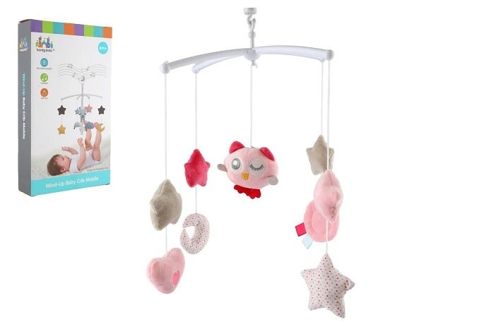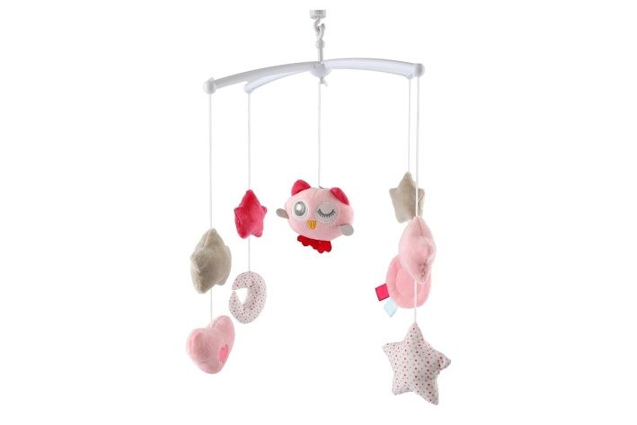 Kolotoč se sovičkou nad postýlku plast s natahovacím hrajícím strojkem růžový v krabici