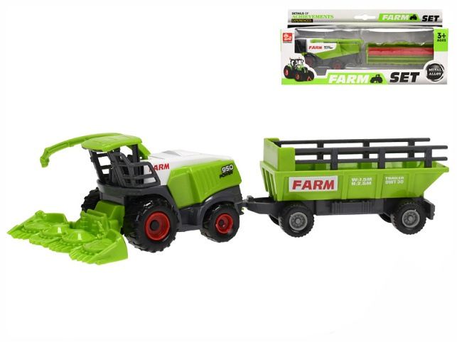 Sada pracovního zemědělského stroje s vlečkou pro všechny malé zemědělce a farmáře.Kombajn je zemědělský stroj, který zastane na poli hodně práce. Kombajn je kovový a měří 22cm. Každý malý farmář potřebuje tento kousek.