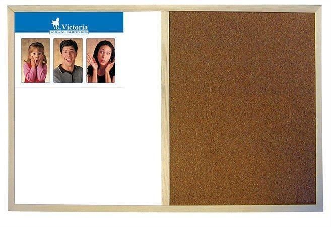 Kombinovaná tabule, kombinace korkové a bílé tabule, 40x60cm, dřevěný rám, VICTORIA