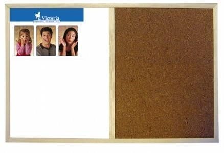 Kombinovaná tabule, kombinace korkové a bílé tabule, 60x80cm, dřevěný rám, VICTORIA
