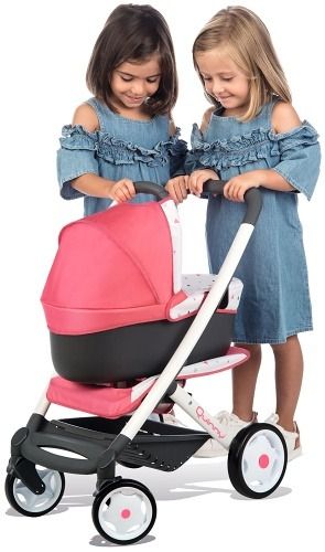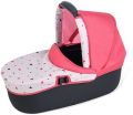 Kombinovaný kočárek pro panenky do velikosti 42 cm. S odnímatelným košíkem. Nasazením korbičky získáte kočárek hluboký nebo lze používat jen jako sportovní kočárek. Korbičku lze použít také samostatně. Výška k ergonomické rukojeti je 65 cm. Přední kolečka otočná, kolečka s protihlukovou vrstvou. Průměr koleček: 15,5 cm a 12,5 cm. Hmotnost: 2,87 kg.