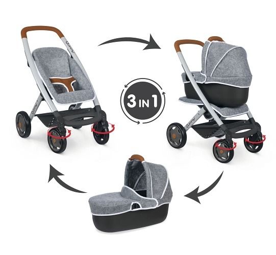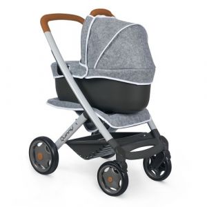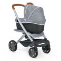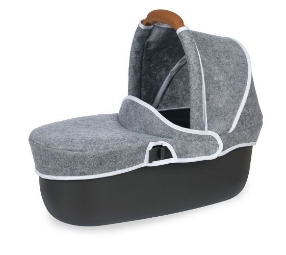 Elegantní kombinovaný kočárek pro panenky s šedým textilním potahem z moderního plstěného materiálu je skutečným trendem! S odnímatelným košíkem. Nasazením korbičky získáte kočárek hluboký nebo lze používat jen jako sportovní kočárek. Korbičku lze použít také samostatně. Výška k ergonomické rukojeti je 65 cm. Předení kolečka otočná, kolečka s protihlukovou vrstvou. Průměr koleček 15,5 cm a 12,5 cm. Pro panenky do velikosti 42 cm, není součástí.