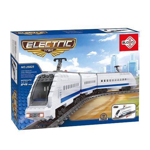 Kompatibilní stavebnice BLOXO rychlovlak na baterie s kolejemi 615 ks