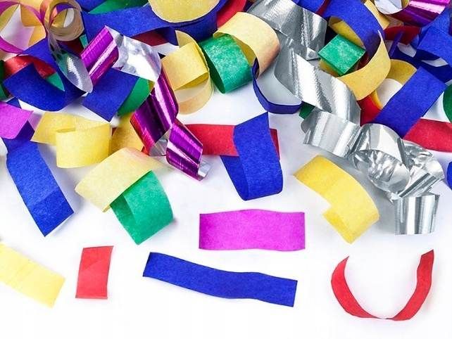 Konfety 60cm Barevné metalické a papírové proužky. Konfety jsou uloženy ve válcovité tubě. Drží se v ruce a ovládají se mechanickým pootočením tubusu. Po vystřelení vyletí barevné papírové proužky do výšky 5 až 8 metrů a rozptýlí se do okolí. Bezpečnost konfety lze použít ve venkovních i vnitřních prostorách. Bezpečná vzdálenost přihlížejících diváků od tuby konfet je 10 metrů. Iniciace stlačený vzduch. Tubus kov. Manipulace pootočení. Max délka odpálení 10 m.