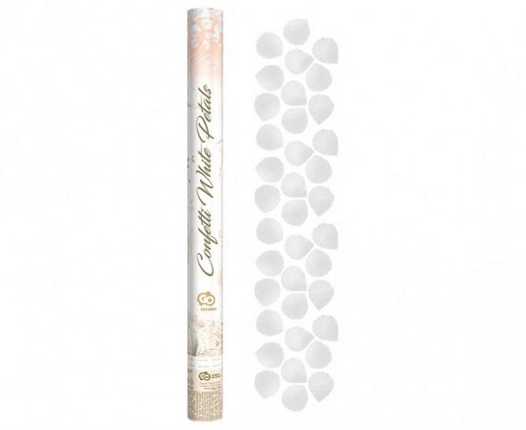 Konfety vystřelovací 60cm plátky růží bílé