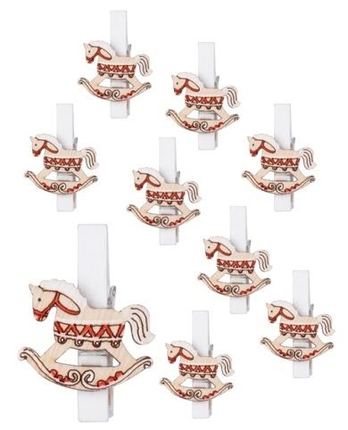 Dřevění koníci na kolíčku, 3 x 2,5 x 0,3 cm – 9 ks v sáčku Dřevění koníci na kolíčku jsou malým, ale kouzelným detailem, který dodá vašim dekoracím přírodní a rustikální nádech. Díky praktickému kolíčku je snadno připevníte na větvičky, dárky nebo jiné výzdobné prvky, čímž vytvoříte útulnou a sváteční atmosféru. Využití: Skvělé na vánoční stromeček, adventní věnce, dárky, dekorace na stůl nebo jako součást zimních aranžmá. Lze je využít také pro kreativní tvoření originálních dekorací. Vlastnosti: rozměry: 3 x 2,5 x 0,3 cmmateriál: dřevobalení: 9 kusů v sáčkusnadné uchycení pomocí kolíčkuDřevění koníci na kolíčku přinášejí do vašich dekorací přírodní kouzlo a jednoduchou eleganci.