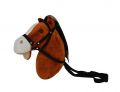 Koňská hlava s popruhem plyš 30cm se zvukem tmavě hnědý s obalem v sáčku