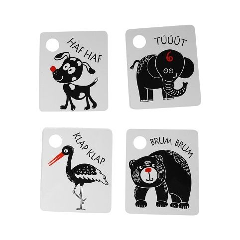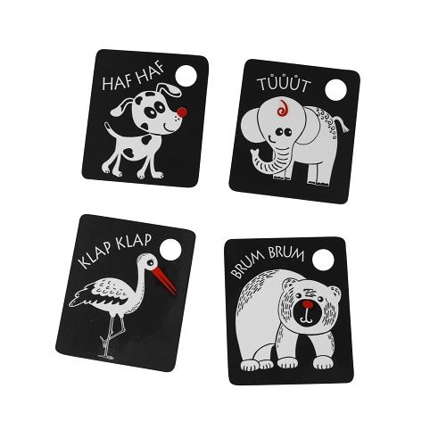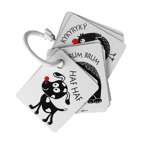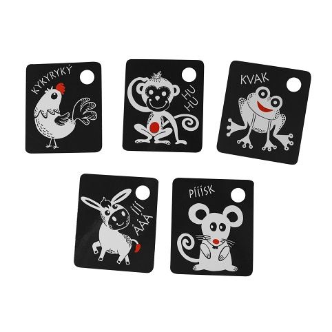 Kartičky jsou baleny po 9 kusech, vyrobeny z českých materiálů. V každé kartičce je otvor pro zavěšení. Součástí balení je plastový kroužek. Tyto kartičky zvyšují schopnost a podněcují dětskou přirozenou zvídavost, rozvíjejí dětskou motoriku, poznávání zvířátek.