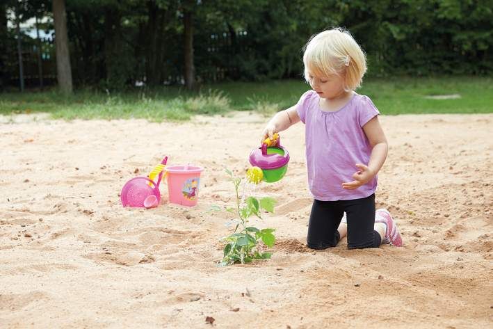 Barevná konvička s kropítkem je ideální pro malé pomocníky na zahradě. Tak hurá na pískoviště a zahradu!