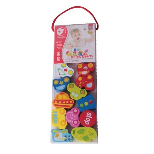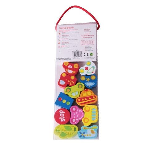 Skvělá hračka pro děti, která jim umožní rozvíjet obratnost, přesnost a koordinaci oko-ruka, a umožní jim poznat různé druhy dopravních prostředků. Dřevěné korále na navlékání na provázek mají tvary a motivy související s dopravou. Úkolem dítěte je navléknout na provázek korálky různých tvarů. Varovaní. Nevhodné pro děti mladší 18 měsíců. Dlouhá sňůra/dlouhý řetěz. Nebezpečí uškrcení.