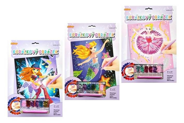Korálkový obrázek s doplňky asst 3 druhy na kartě 23x32cm