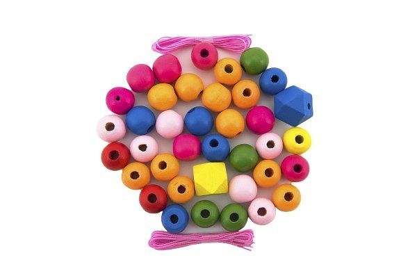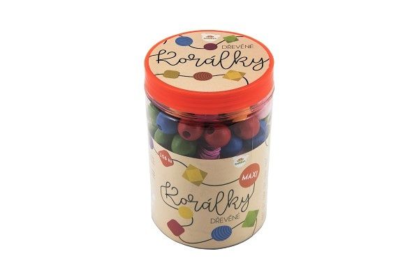 Dětské barevné korálky MAXI pro malé parádnice a nejen pro ně. V sadě najdete různé druhy a tvary korálků, které mají pestré a veselé barvy. Součástí jsou gumičky, na které si děti mohou navlékat korálky dle své fantazie, náramky a řetízky jsou poté roztahovací. Vzniknou tak jedinečné módní doplňky. Plastová dóza obsahuje 106 ks korálků. Dřevěné maxi korálky jsou vhodnou hračkou pro rozvoj dětské motoriky, trpělivosti i fantazie.