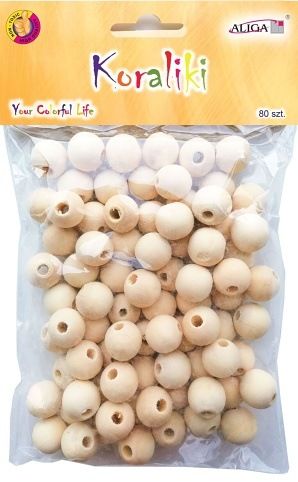 Korálky kulaté 14mm 80ks přírodní, dřevěné