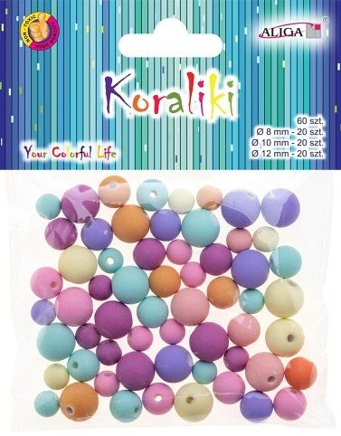 Korálky kulaté 60ks, mix velikostí PASTEL Aliga 9456