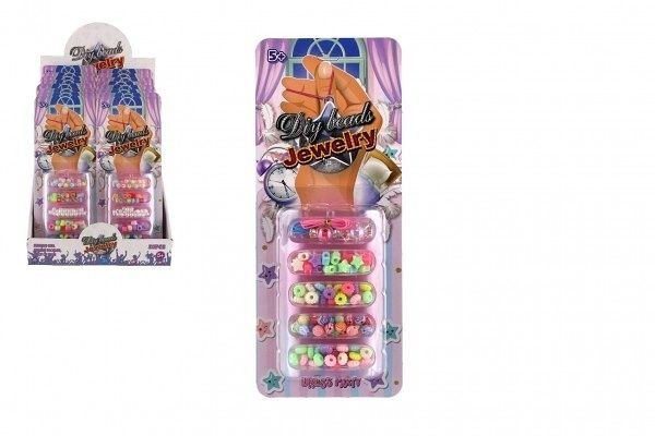 Korálky plastové barevné pastelové se šňůrkou na kartě 10x25cm