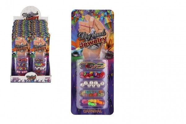 Korálky plastové barevné se šňůrkou na kartě 10x25cm