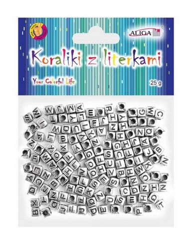 Korálky s písmenky 50ks 6x6mm, stříbrné