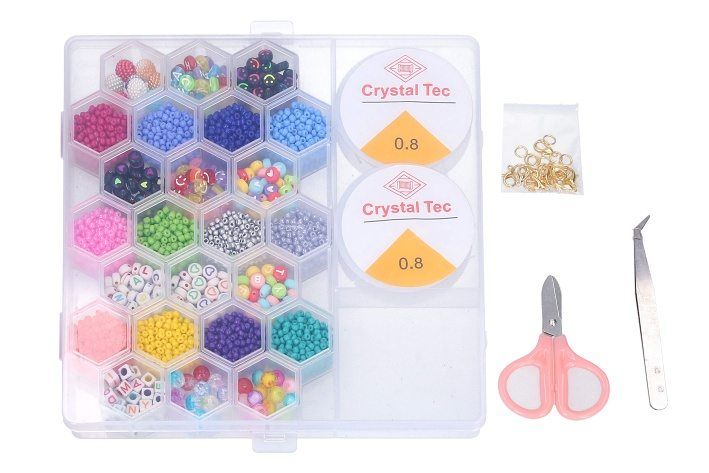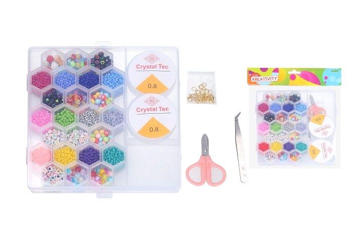 Korálky set + provázky + nůžky + zapínání + pinzeta