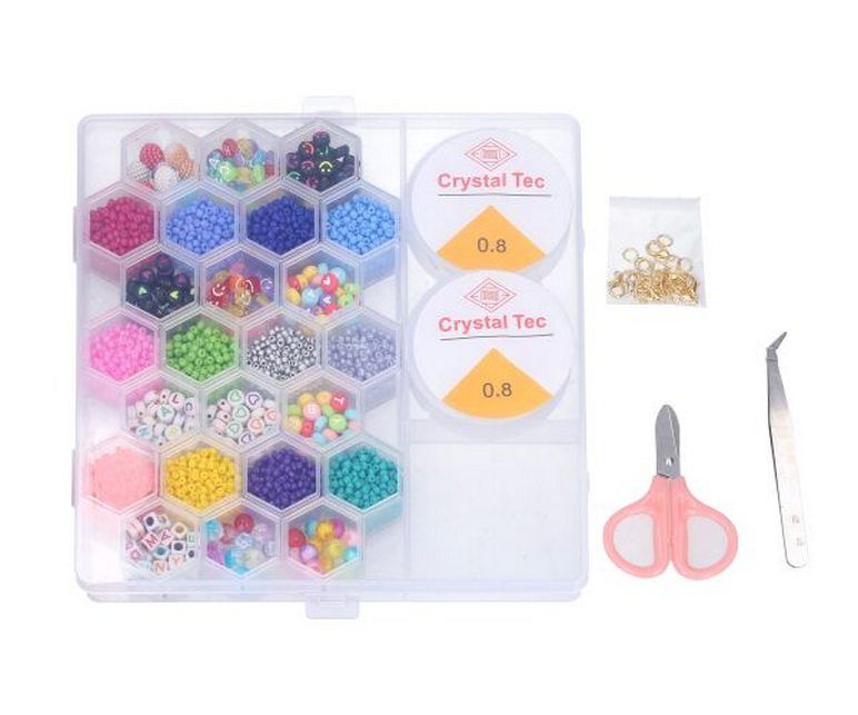 Korálky set + provázky + nůžky + zapínání + pinzeta