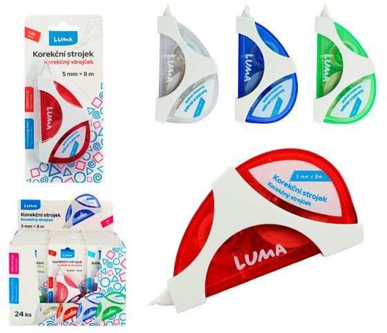 - návin 8 m- šíře stopy 5 mm- vhodný pro všechny druhy korektur- P V C tělo mix barev- k okamžitému přepsání- jednorázový- suchý film, neloupe se