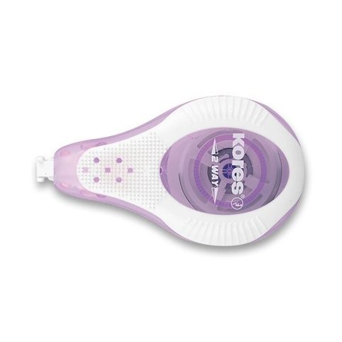 Jednorázový korekční strojekKores 2 Way Pastel s opravnou páskou 4,2 mm x 8 m. Vhodný pro praváky i pro leváky. Ergonomický pogumovaný soft povrch. Měkká zóna pro příjemnější úchop. Vhodný pro všechny druhy korektur, jemná aplikace, neškrábe, neloupe se a nezanechává stopy.