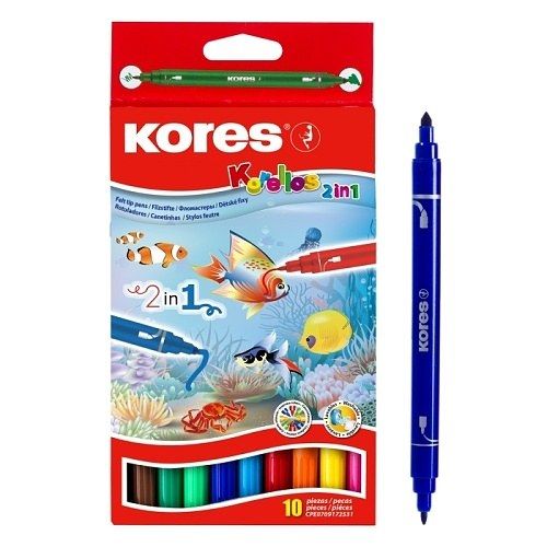 KORES Dětské fixy KORELLO, 2v1 ( tenký a silný hrot), 10 barev