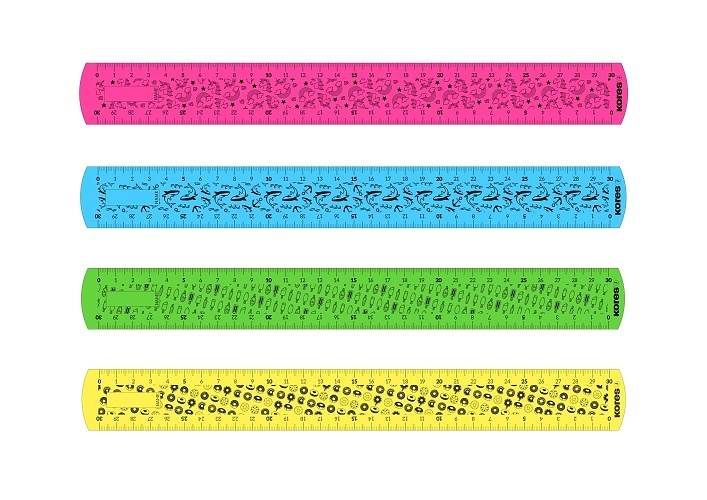 KORES ELASTIK 30cm, ohebné pravítko, mix 4 barev (modré, růžové, zelené, žluté)