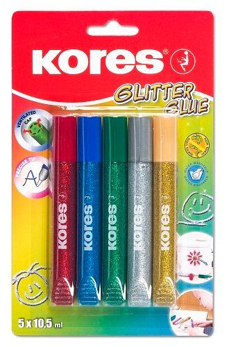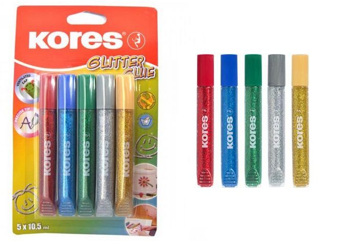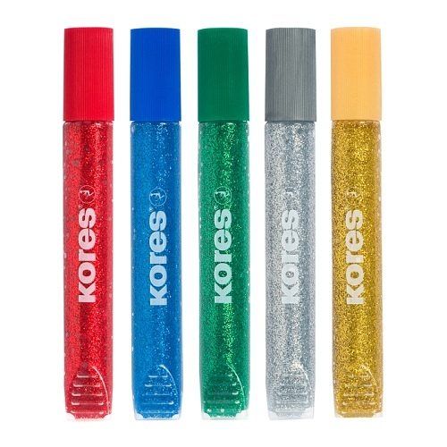 KORES Glitter glue 10,5 ml x 5 barev, lepidlo se třpytkami