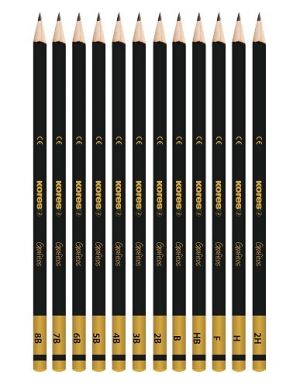 KORES Grafitos set - Trojhranné obyč.tužky v sadě, 12 tužek, lakovaný konec, různá tvrdost