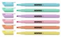 Tenký zvýrazňovač vysoké kvality se seříznutým hrotem. 6 atraktivních pastelových barev. Nevysychá ani při dlouhé době otevření. Inkoust odolný vůči UV záření. Univerzální inkoust na vodní bázi vhodný pro všechny druhy papíru. Šíře stopy 0,5-3,5 mm.