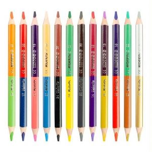 Oboustranné Jumbo pastelky 2v1. 12 ks duo pastelek = 24 barev, včetně 2 metalických (stříbrná a zlatá). Ideální pro použití v mateřských školách a pro předškolní výchovu. Z vysoce kvalitního lipového dřeva. Extra barevné pigmenty a měkká tuha o průměru 5 mm. Ořezávátko v balení zdarma. Trojhranný ergonomický tvar. Cena za sadu.