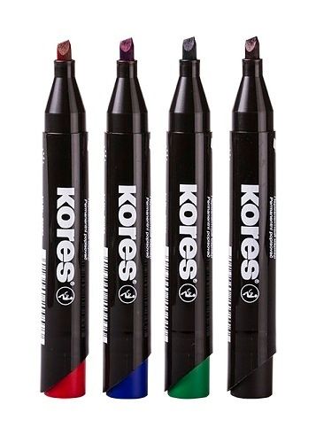 KORES K-MARKER Permanentní popisovač, zkosený hrot 3-5 mm, mix 4 barev