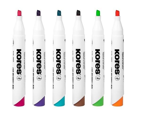 KORES K-MARKER, Popisovač na bílé tabule, zkosený hrot 3-5 mm, mix 6 barev