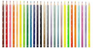 Trojhranný tvar pastelek pro pohodlné kreslení. Zářivé barvy díky vysokému obsahu pigmentu. Z vysoce kvalitního dřeva pro snadné ořezávání. Extra měkká tuha o průměru 3 mm. Speciální kovová lesklá povrchová úprava pastelek. Originální ornamenty na tělech pastelek. Sada 26 barev obsahuje 6 metalických, 4 neonové a 4 pastelové barvy.