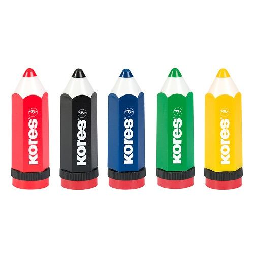 KORES KOLORITOS, jednoduché plastové ořezávátko ve tvaru tužky se zásobníkem, barevný mix