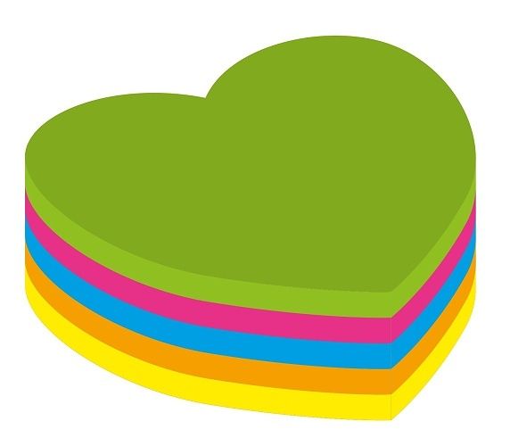 Nepermanentní papírové samolepicí bločky. Atraktivní tvary – srdíčko, šipka, bublina. Zářivé neonové barvy: žlutá, modrá, oranžová, růžová, zelená. Ideální pro zanechání vzkazů a připomínek. Při opakovaném použití nezanechává skvrny. Nekroutí se. Obsahuje 250 lístků v bločku v 5 barvách.