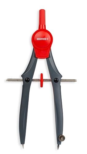 Plastové kružítko. Kolečko pro fixaci vzdálenosti tuhy od středu. Ergonomický a moderní design. Ideální pro školu, hobby a kreativní tvoření. V červeno/šedé barvě.