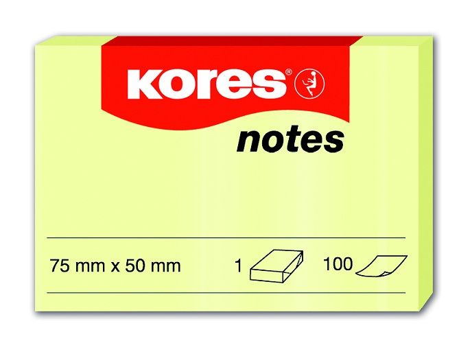 KORES Samolepicí bločky žluté 75x50 / 100 lístků v bločku