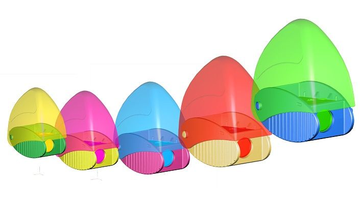 KORES SNAPPY, jednoduché plastové ořezávátko se zásobníkem, mix 5 barev