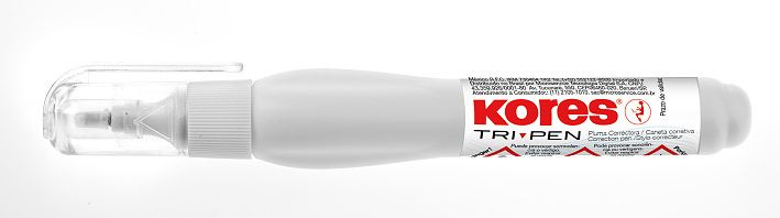 Korekční pero s ergonomickým úchopem trojhranného tvaru. S kovovým hrotem. S míchací kuličkou, která zabraňuje zasychání. Korekce začne vytékat po zmáčknutí. Rychle schne, perfektně kryje. Vhodné pro všechny druhy korektur, linka korektury cca 2 mm. Vyrobeno v ČR.