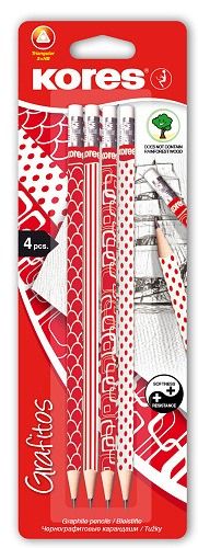 Grafitová tužka se silnou a odolnou tuhou. Vysoce kvalitní lipové dřevo pro snadné ořezávání. 4 designy s bílou pryží. Speciální tuha pro jemné a pohodlné psaní, neškrábe. Tvrdost 2 = HB. Ergonomický trojhranný tvar. Do vyprodání zásob.