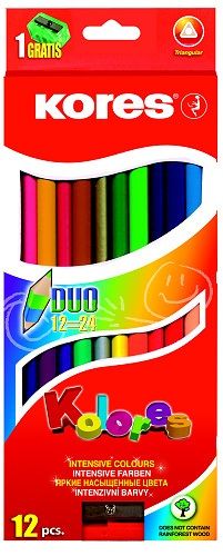 KORES KOLORES DUO trojhranné oboustranné pastelky 3 mm, s ořezávátkem / 12 barev
