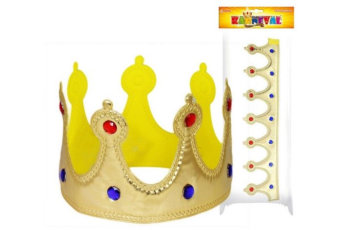 Karnevalová královská koruna, látková , zdobená kamínky. Na suchý zip. Délka cca 53 cm.Rozměry balení: 140x570x3 mm.