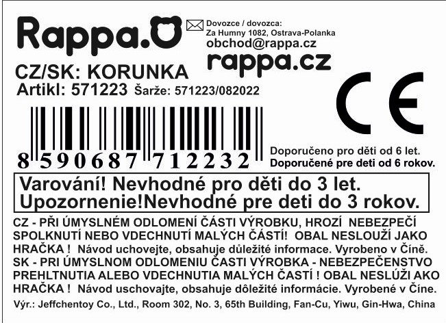 Dětská plastová korunka z plastu, zdobená barevnými kamínky, ve stříbrné a zlaté barvě. Karneval neboli masopust (v původním slova smyslu "opuštění masa" (slovo karneval pochází nejspíš z italského carne levare, "dát pryč maso"), tedy začátek postního období před Velikonocemi. Karnevalový rej začíná 6. ledna a končí na Popeleční středu. Někdy to jsou poslední dny před koncem karnevalu, kdy lidé organizují různé hlučné výstupy, zábavy a parády, oblékají karnevalové kostýmy. Lidově též fašank. V současném slova smyslu jde o taneční zábavy, hýření, lidové zábavy v maskách, maškarní bály. Rozměry dětské hračky (š): 11,5cm Materiál: Plast Obsah balení: Dostupné barvy: zlatá, stříbrná Hračka nevhodná pro děti do 3 let. Cena je uvedena za 1 kus hračky.