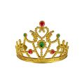 Dětská plastová korunka zdobená barevnými kamínky, ve stříbrné a zlaté barvě.