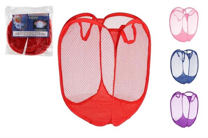 Lehký a prostorný košík z látkové síťoviny. Dá se použít například jako koš na hračky.. Díky tomu, že síťovina dokonale propouští vzduch, bude obsah koše vždy bez problémů "dýchat". Košík lze složit na velmi malý rozměr, díky čemuž jej snadno schováme, pokud jej zrovna nepotřebujeme. Po vytažení z tašky se sám rozloží.