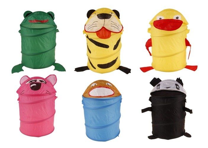 Praktický úložný koš na hračky lze snadno složit. Druhy zvířátek: kačenka, panda, rybka, tygr, žabka a růžová myška.